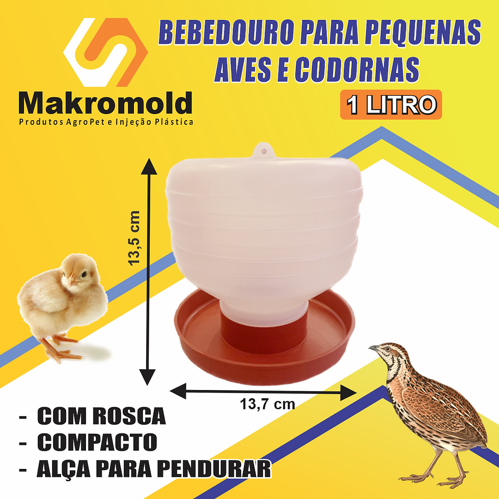 BEBEDOURO AUTOMÁTICO 1 LITRO PARA PEQUENAS AVES E CODORNAS
